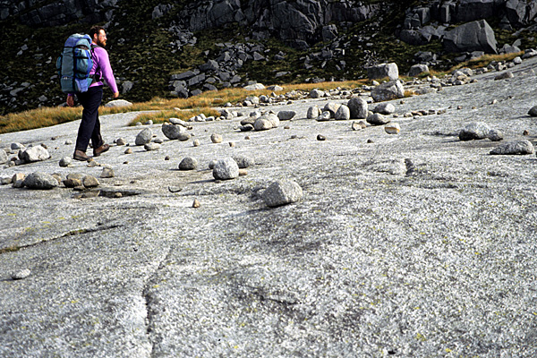 Paddy Dillon walking along the curious De’il’s Bowling Green in the heart of the Galloway Hills.